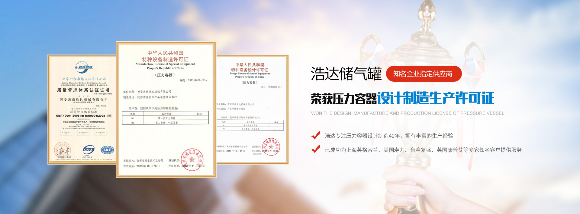 西安宋南浩達(dá)機(jī)械有限公司是陜西首批取得壓力容器制造許可證的廠家,是陜西省定點(diǎn)生產(chǎn)壓力容器的專業(yè)工廠,現(xiàn)有近40年的制造歷史。